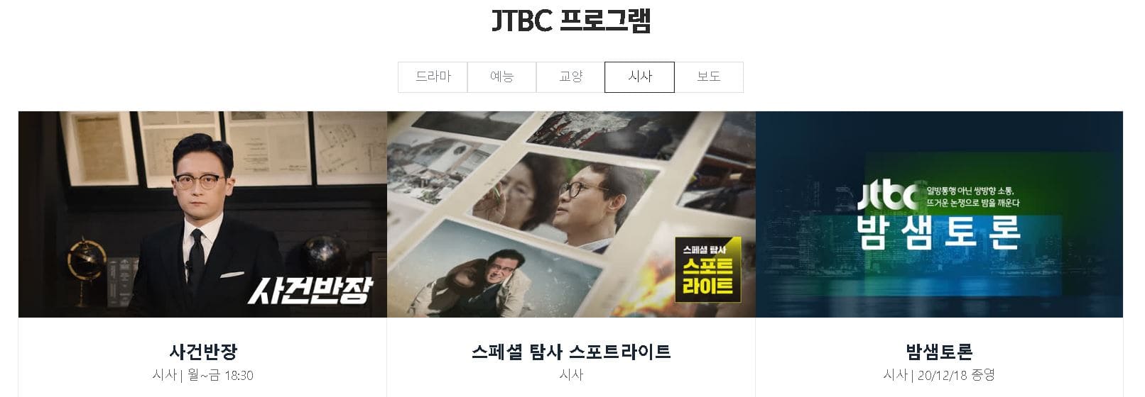 JTBC는 드라마, 예능, 스포츠, 시사 등 정말 재미있는 프로그램이 많습니다. 저도 예전에는 JTBC를 시사 또는 예능만 봤는데 요즘은 드라마도 많이 하고 있습니다.