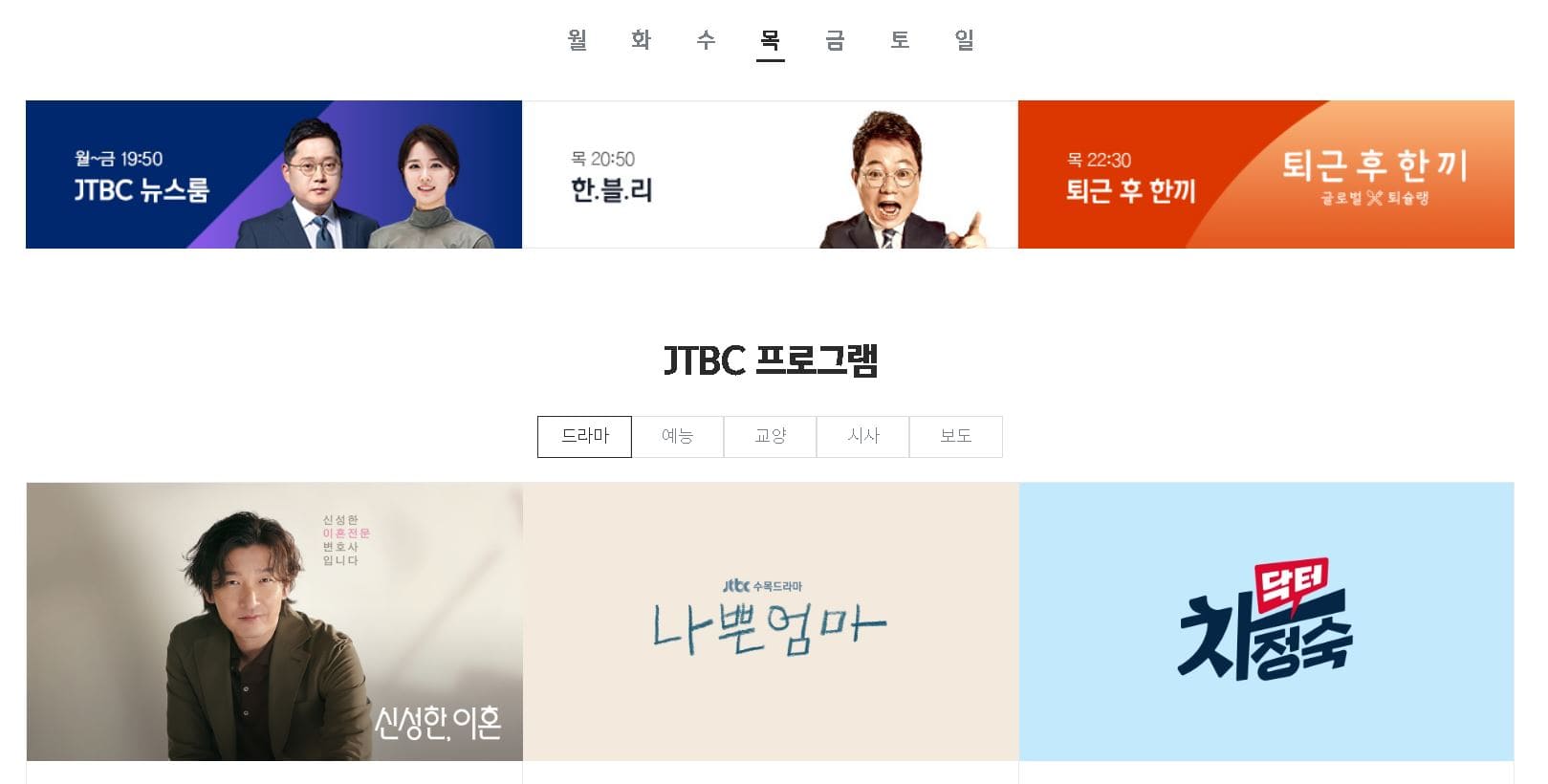 1. JTBC 편성표 확인