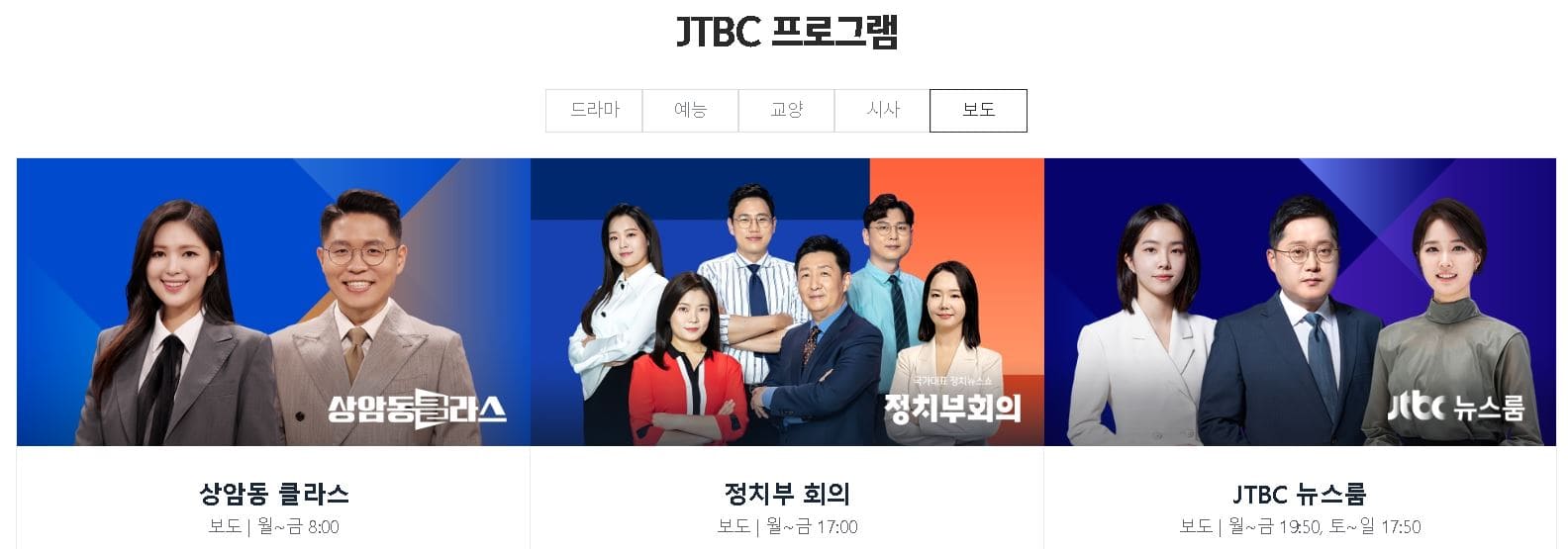 1. JTBC 편성표 확인